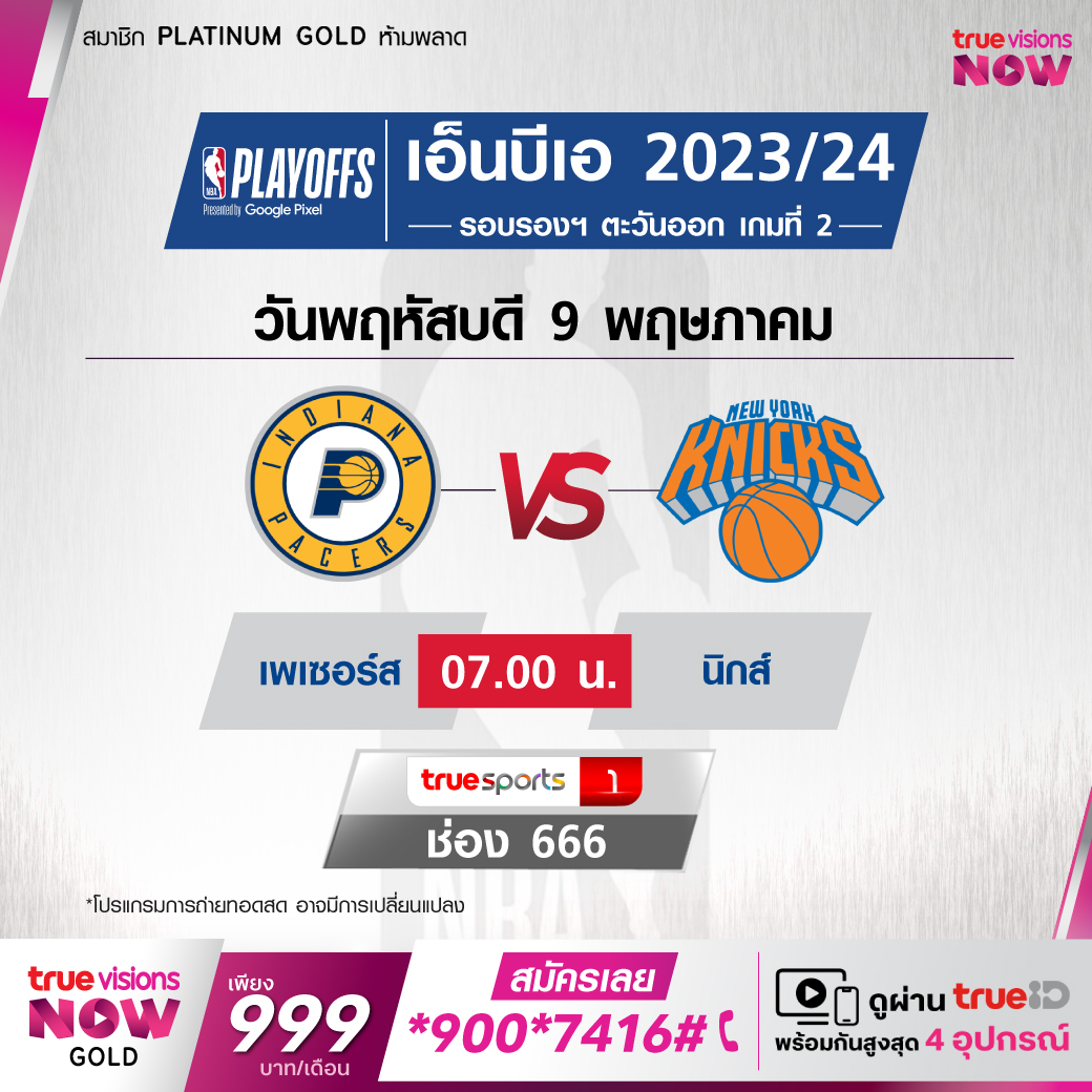 วันพฤหัสบดี 9 พ.ค. Pacers Vs Knicks เวลา 07.00 ทางช่อง TS 1 (666)