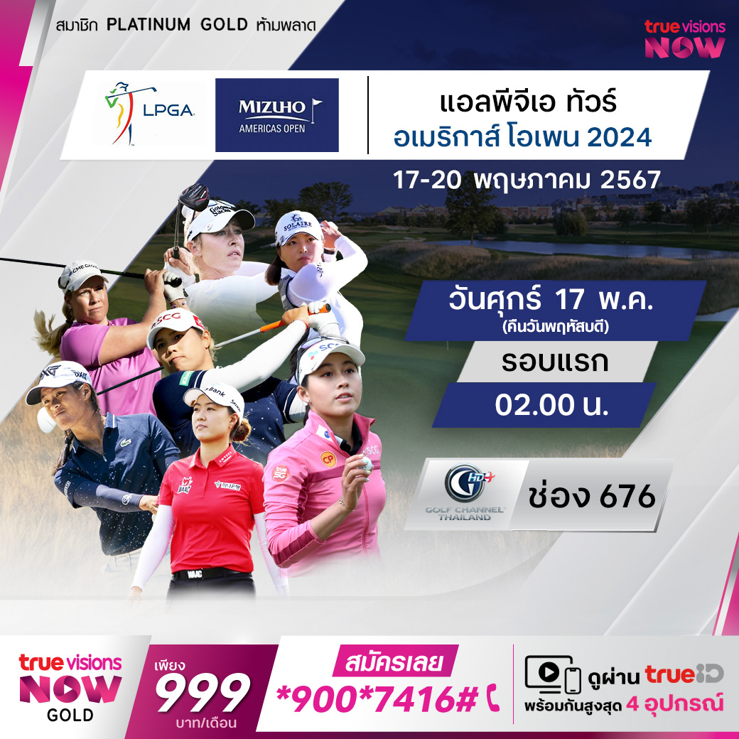 กอล์ฟหญิง แอลพีจีเอ ทัวร์ รายการ มิซูโฮะ อเมริกาส์ โอเพ่น ที่สนาม ลิเบอร์ตี้ เนชั่นแนล กอล์ฟ คลับ ใน เจอร์ซี่ ซิตี้, นิว เจอร์ซี่ สหรัฐอเมริกา ชิงเงินรางวัลรวม 3,000,000 เหรียญสหรัฐฯ ร่วมเชียร์โปรสาวไทยลุ้นจบสกอร์สวยๆ แข่งกับโปรแถวหน้าของโลก ชมสด จุใจ ครบทุกรอบ ที่ ทรูวิชั่นส์