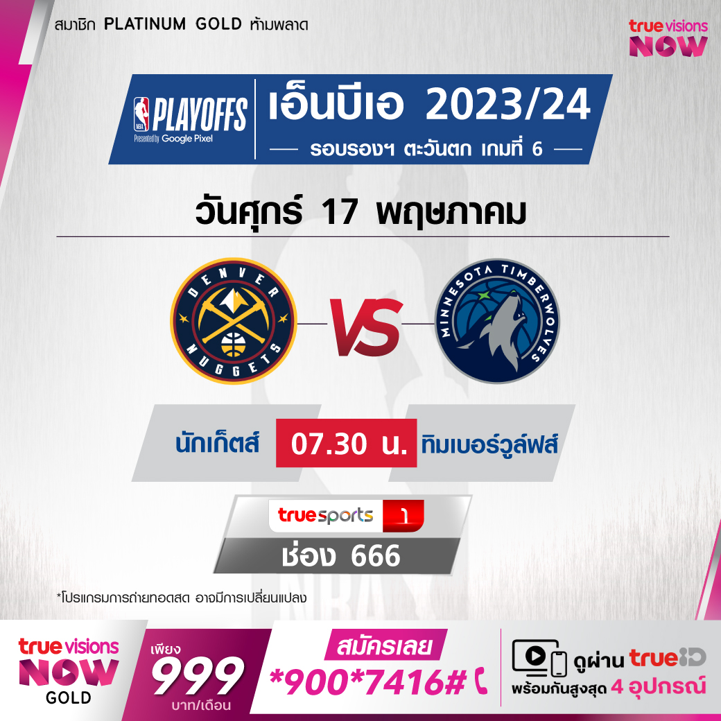 วันศุกร์ 17 พ.ค. Nuggets Vs Timberwolves เวลา 07.30 ทางช่อง TS 1