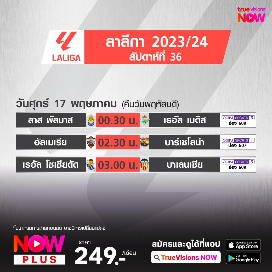 Las Palmas vs Real Betis เวลา 00.30-02.30 ทางช่อง beIN 3 (609)