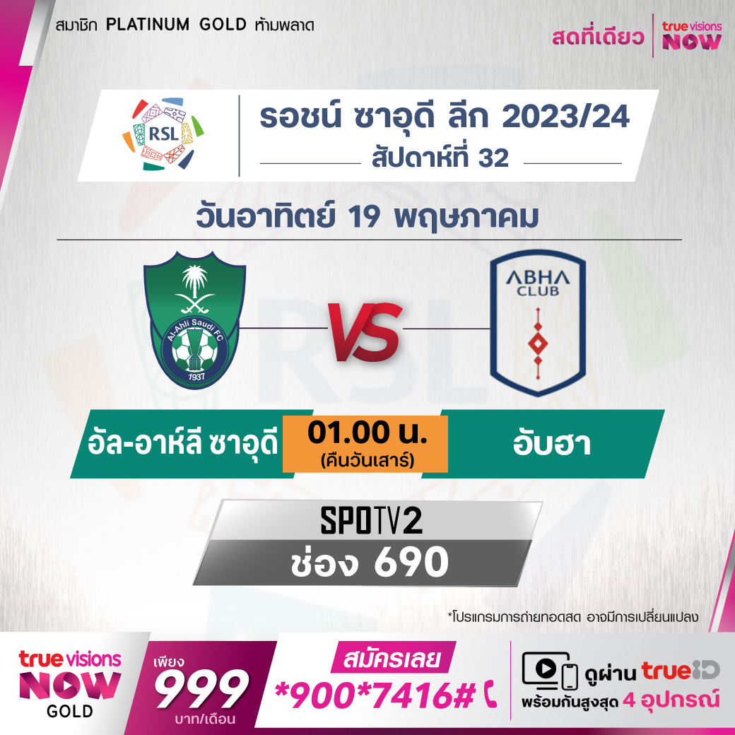 Al-Ahli Saudi vs Abha เวลา 01.00-03.00 ทางช่อง SPOTV2 (690)