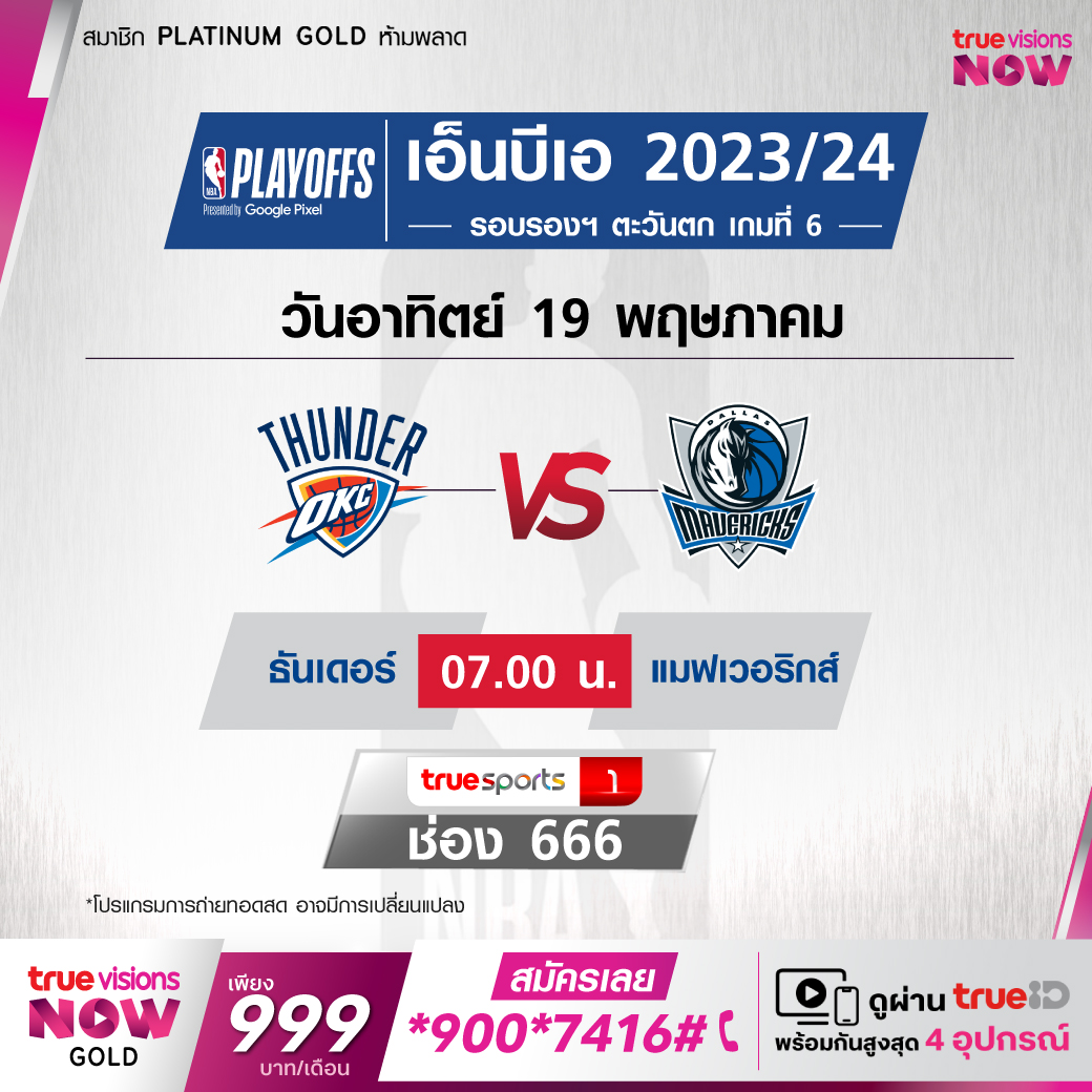 วันอาทิตบ์ 19 พ.ค. Thunder Vs Mavericks เวลา 07.00 ทางช่อง TS 1 (666)