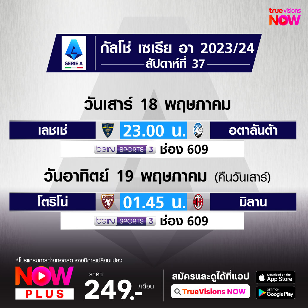 Lecce vs Atalanta เวลา 23.00-01.00 ทางช่อง beIN 3 (609)