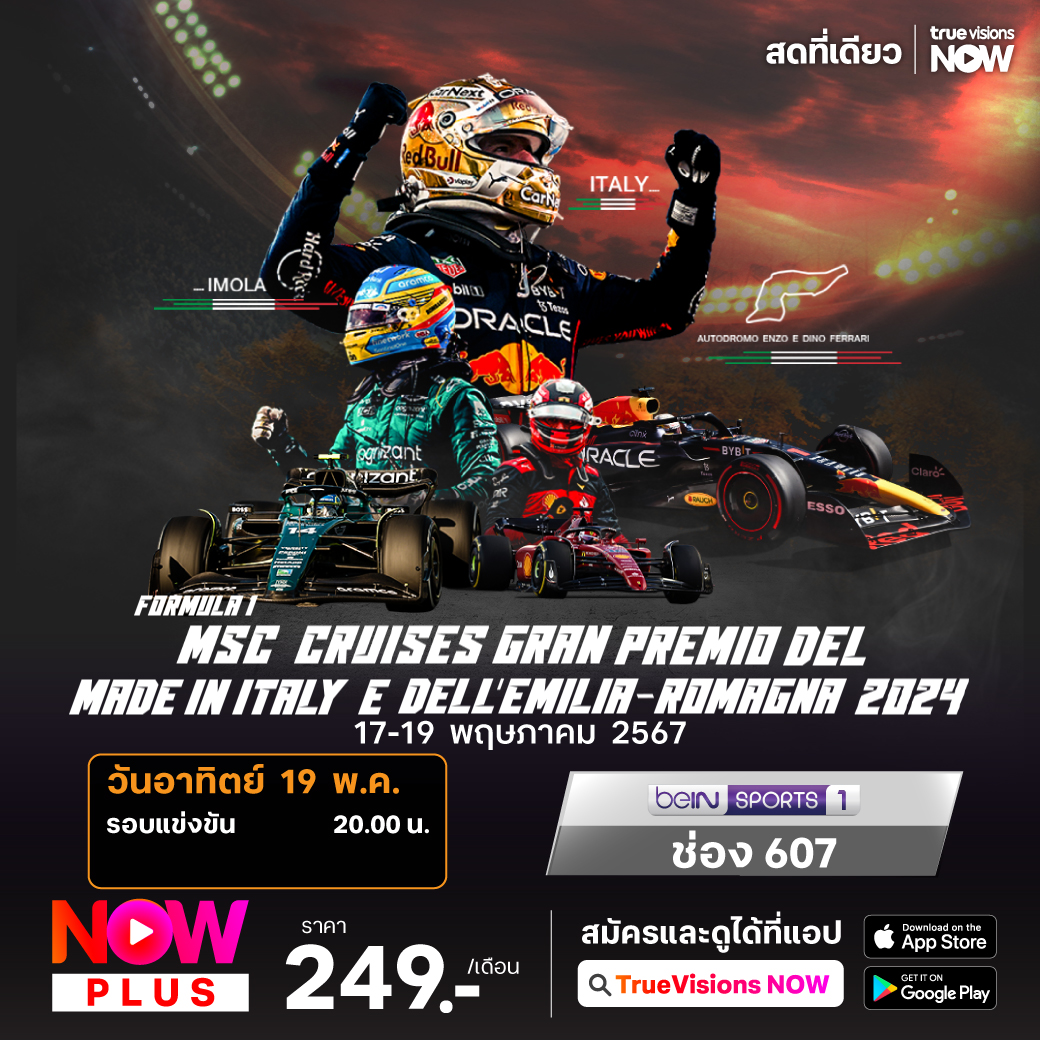 ศึกฟอร์มูล่า วัน สนามที่ 7 เปิดฉากลุยกันในแผ่นดินยุโรปที่ประเทศอิตาลี กับรายการ เอมิเลีย โรมันญ่า กรังด์ปรีซ์ ที่ออโตโดรโม่ อี ดิโน่ เอนโซ่ เฟอร์รารี่ เซอร์กิต จับตาแชมป์โลก 3 สมัย แม็กซ์ เวอร์สแท็ปเพ่น ที่พร้อมกลับมาทวงแชมป์ หลังจากถูกดาวรุ่งลูบคมในสนามล่าสุด ชมสด จุใจ เอ็กซ์คลูซีฟ ที่เดียวที่ ทรูวิชั่นส์