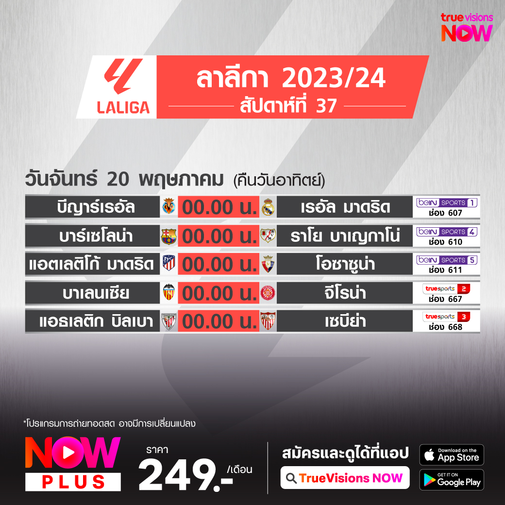 Atletico vs Osasuna เวลา 00.00-02.00 ทางช่อง beIN 5 (611)