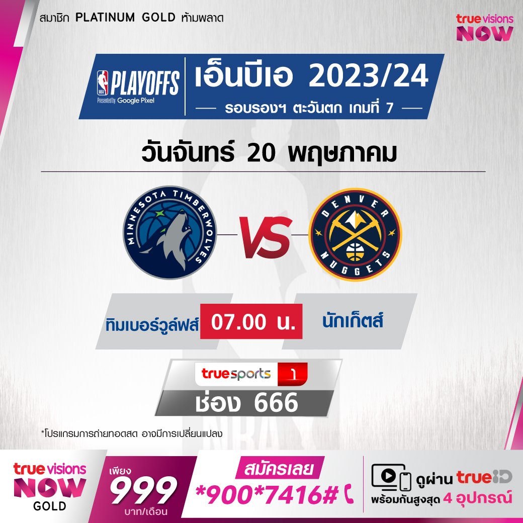 วันจันทร์ 20 พ.ค. Timberwolves Vs Nuggets เวลา 07.00 ทางช่อง TS 1 (666)