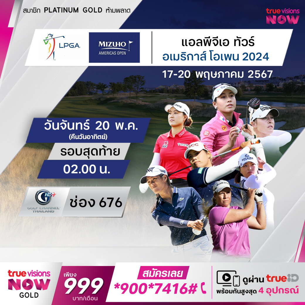 กอล์ฟหญิง แอลพีจีเอ ทัวร์ รายการ มิซูโฮะ อเมริกาส์ โอเพ่น ที่สนาม ลิเบอร์ตี้ เนชั่นแนล กอล์ฟ คลับ ใน เจอร์ซี่ ซิตี้, นิว เจอร์ซี่ สหรัฐอเมริกา ชิงเงินรางวัลรวม 3,000,000 เหรียญสหรัฐฯ ร่วมเชียร์โปรสาวไทยลุ้นจบสกอร์สวยๆ แข่งกับโปรแถวหน้าของโลก ชมสด จุใจ ครบทุกรอบ ที่ ทรูวิชั่นส์