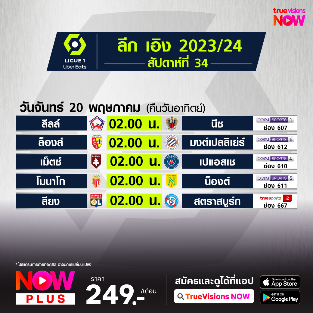 Lille vs Nice เวลา 02.00-04.00 ทางช่อง beIN 1 (607)