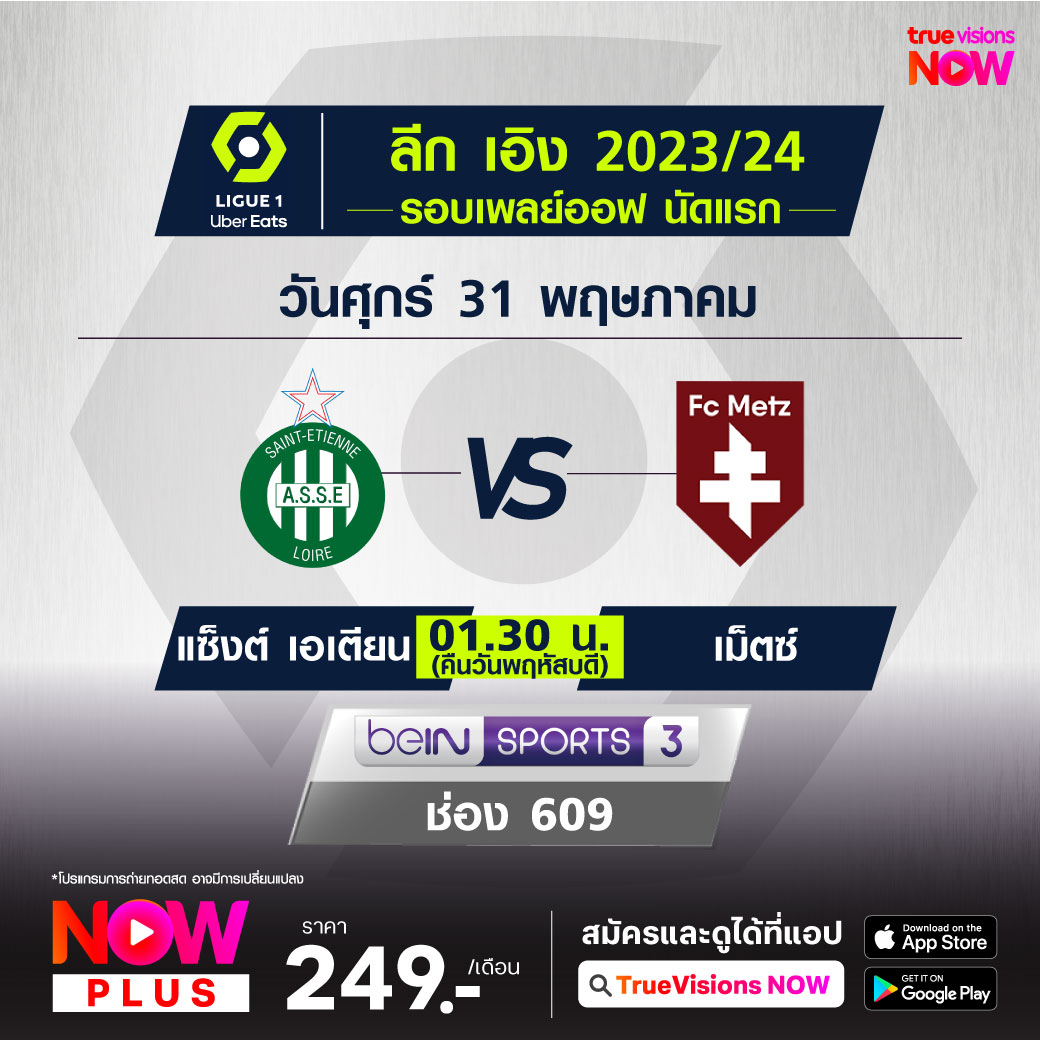 St. Etienne vs Metz เวลา 01.30-03.30 ทางช่อง beIN 3 (609)