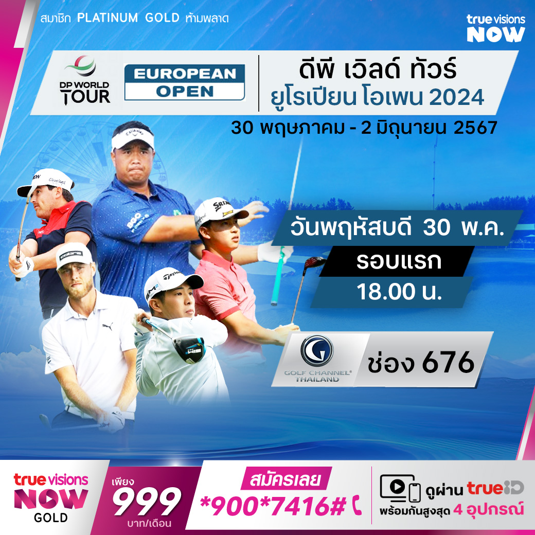 กอล์ฟ ดีพี เวิลด์ทัวร์ รายการ ยูโรเปี้ยน โอเพ่น ที่สนาม กรีน อีเกิ้ลส์ กอล์ฟ คอร์ส ในเมืองฮัมบูร์ก ประเทศเยอรมนี ชมลีลาของนักกอล์ฟ ชั้นนำของทัวร์แย่งกันเป็นแชมป์ พร้อมกับล่าเงินรางวัลรวมมหาศาลถึง 2,500,000 เหรียญสหรัฐฯ ร่วมลุ้นกันว่า สุดท้ายแล้วใครจะสมหวัง ได้เป็นแชมป์ปีนี้ ชมสด ครบทั้ง 4 รอบ ทาง ทรูวิชั่นส์