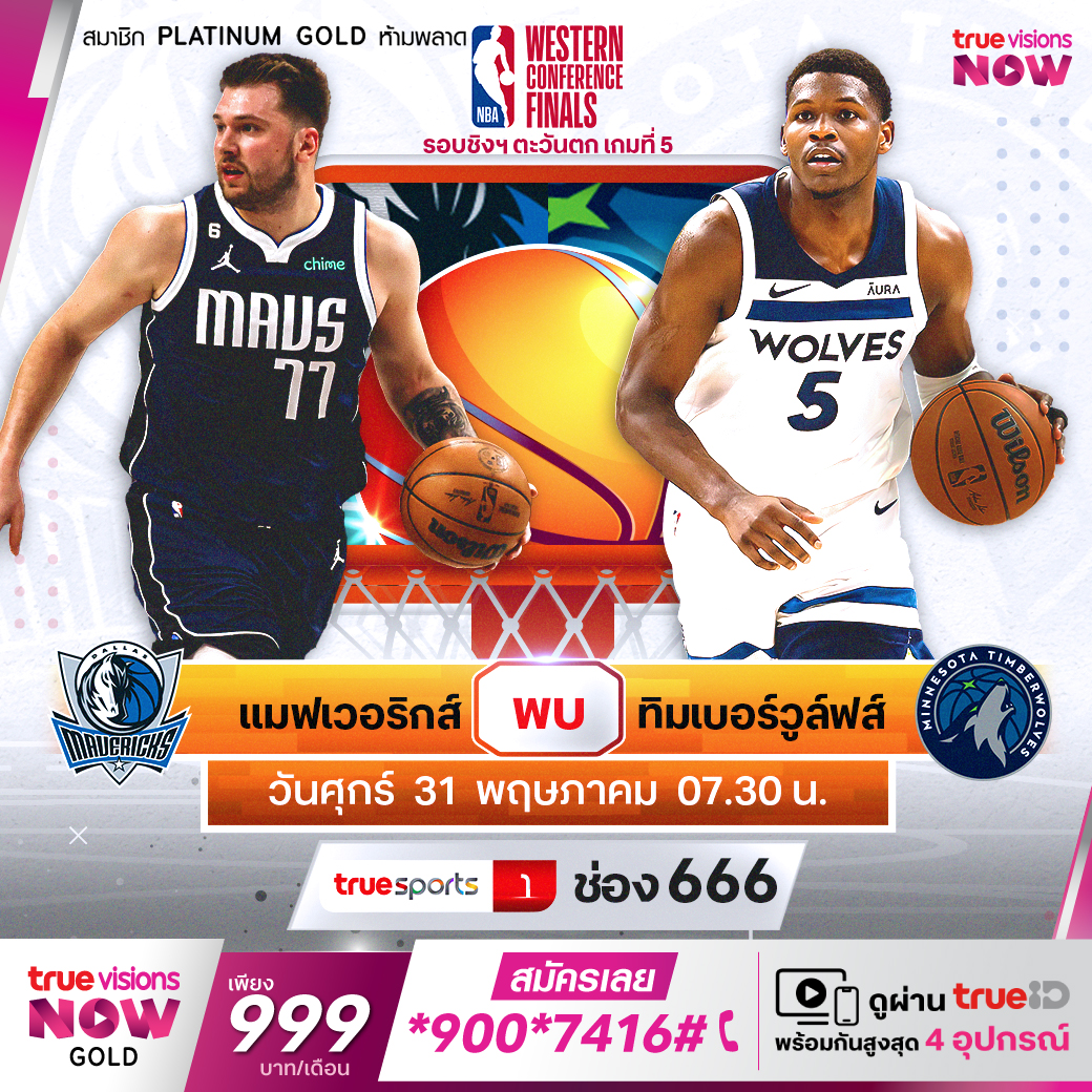 วันศุกร์ 31 พ.ค. Mavericks Vs Timberwolves เวลา 07.30 ทางช่อง TS 1 (666)