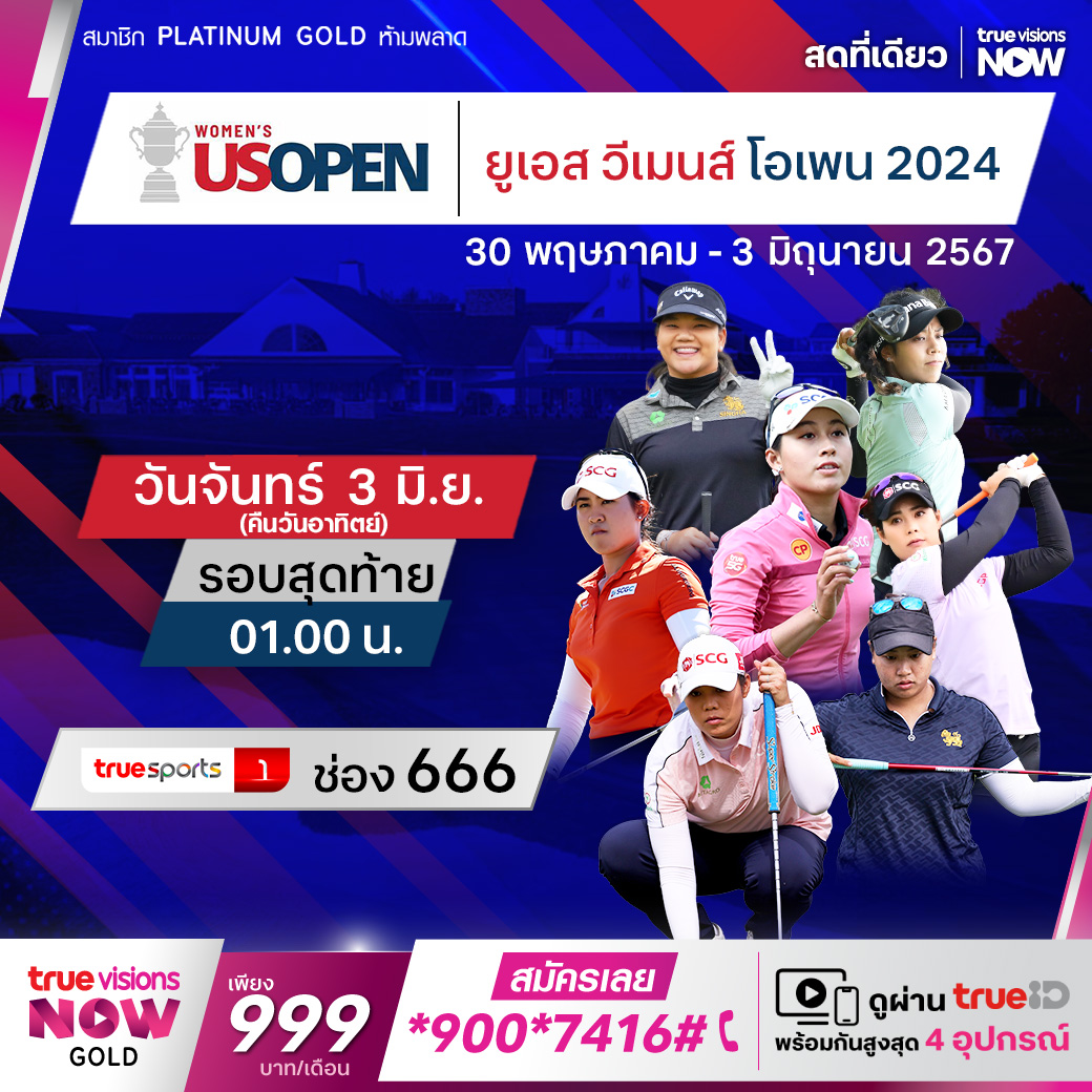 กอล์ฟเมเจอร์หญิงลำดับที่ 3 ของปีเดินทางมาถึงแล้ว กับรายการ ยูเอส วีเมนส์ โอเพ่น ครั้งที่ 79 ร่วมเชียร์โปรสาวไทยสร้างผลงานกระหึ่มโลก ทำผลงานเบียดแย่งแชมป์กับนักกอล์ฟแถวหน้าของวงการ จากสนาม แลงคาสเตอร์ คันทรี่ คลับ รัฐเพนซิลวาเนีย สหรัฐอเมริกา ชิงเงินรางวัลรวมสูงถึง 12 ล้านเหรียญสหรัฐฯ สด เอ็กซ์คลูซีฟ ที่เดียวที่ ทรูวิชั่นส์