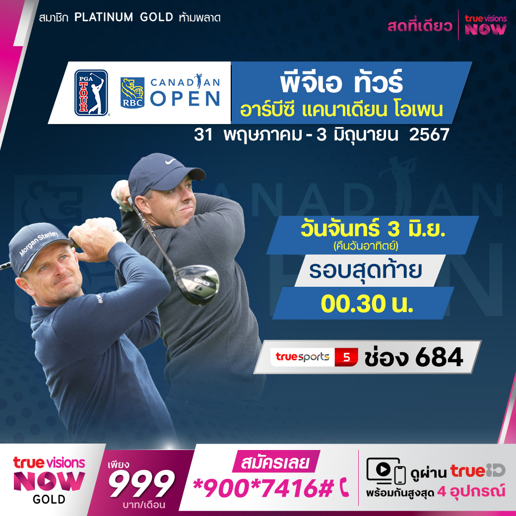 กอล์ฟ พีจีเอ ทัวร์ รายการ อาร์บีซี แคนาเดียน โอเพ่น 2024 ชิงเงินรางวัล 9,400,000 เหรียญสหรัฐฯ ที่สนาม แฮมิลตัน กอล์ฟ แอนด์ คันทรี่ คลับ ในแฮมิลตัน ออนตาริโอ นำโดย รอรี่ แม็คอิลรอย อดีตแชมป์ 2 สมัย ที่เตรียมล่าแชมป์รายการนี้สมัยที่ 3 ลุ้นกันว่าใครจะชูโทรฟี่แชมป์ปีนี้ สด เอ็กซ์คลูซีฟ ครบทุกรอบ ที่เดียว ที่ ทรูวิชั่นส์