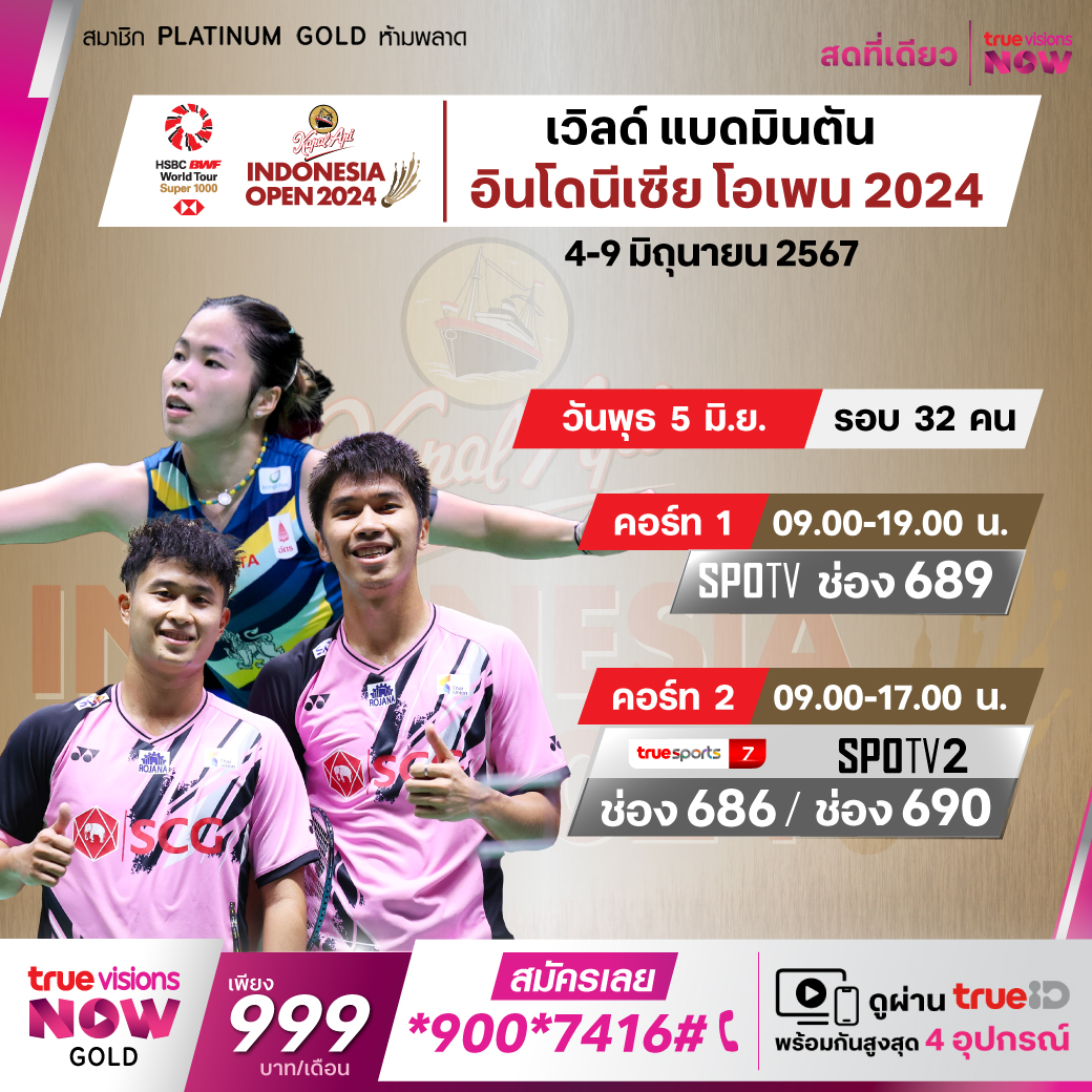 เวิลด์ แบดมินตัน ระดับ เวิลด์ ทัวร์ ซูเปอร์ 1000 รายการ อินโดนีเซีย โอเพ่น 2024 มือดีระดับโลกมาร่วมตัวกันแบบครบๆ ที่กรุงจาการ์ต้า ประเทศอินโดนีเซีย พร้อมกับนักแบดมินตันทัพใหญ่จากไทยที่ร่วมลุ้นแชมป์ด้วย ใครจะคว้าแชมป์ไปครอง ชมสด เอ็กซ์คลูซีฟ ครบทุกรอบ ที่เดียวที่ ทรูวิชั่นส์