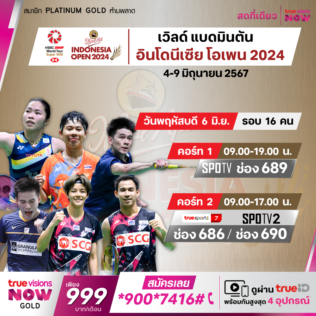 เวิลด์ แบดมินตัน ระดับ เวิลด์ ทัวร์ ซูเปอร์ 1000 รายการ อินโดนีเซีย โอเพ่น 2024 มือดีระดับโลกมาร่วมตัวกันแบบครบๆ ที่กรุงจาการ์ต้า ประเทศอินโดนีเซีย พร้อมกับนักแบดมินตันทัพใหญ่จากไทยที่ร่วมลุ้นแชมป์ด้วย ใครจะคว้าแชมป์ไปครอง ชมสด เอ็กซ์คลูซีฟ ครบทุกรอบ ที่เดียวที่ ทรูวิชั่นส์