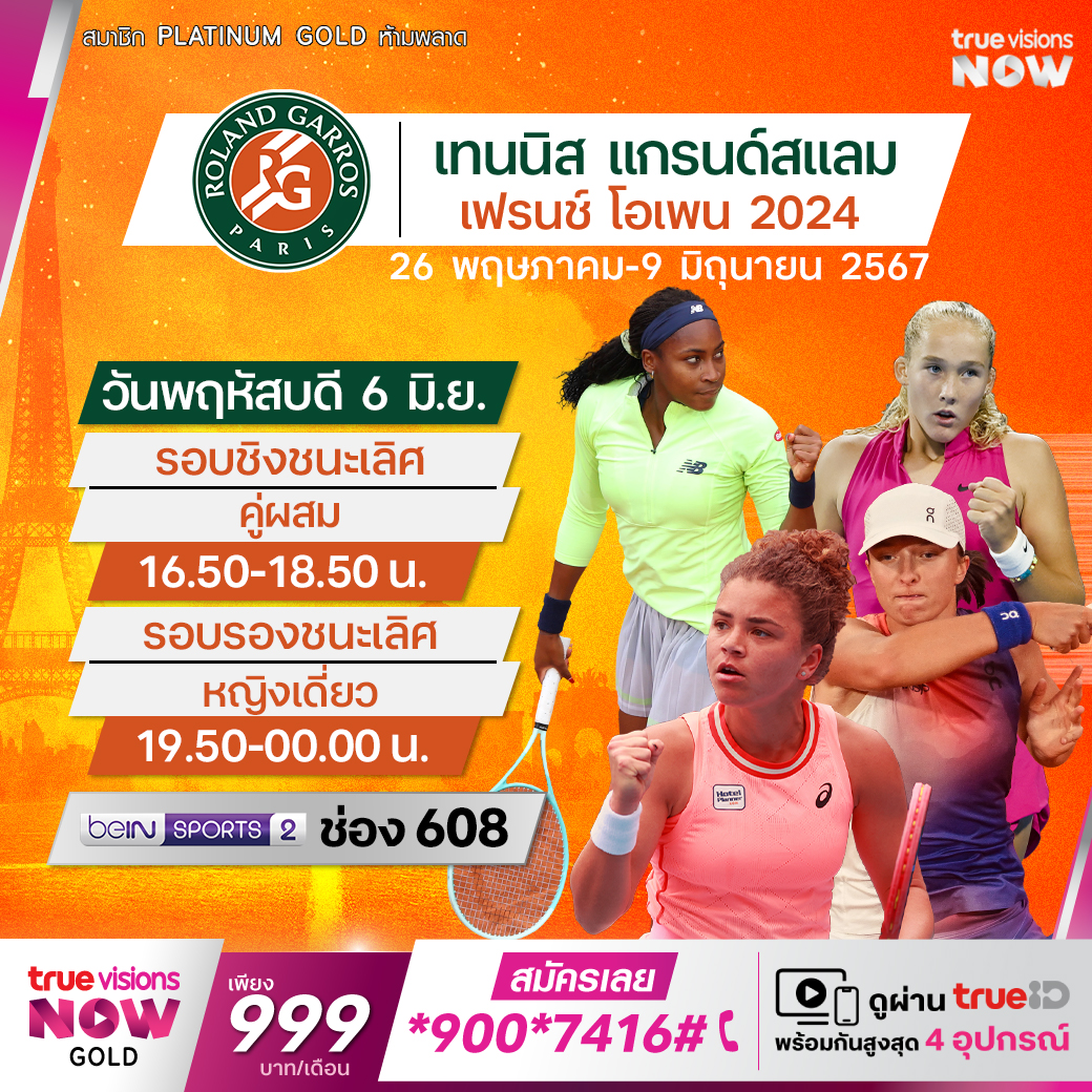ติดตามชมศึกเทนนิส โรลังด์ การ์รอส หรือ เฟร้นช์ โอเพ่น แกรนด์สแลมที่ 2 ของปี การแข่งขันสุดทรหดบนคอร์ทดิน ที่พิสูจน์ความแข็งแกร่งทั้งร่างกายและจิตใจ มาถึงในรอบรองชนะเลิศแล้ว ใครจะก้าวไปเป็นแชมป์ในบั้นปลาย ชมสด เอ็กซ์คลูซีฟ ตลอดทั้งทัวร์นาเมนท์ ที่เดียวที่ ทรูวิชั่นส์