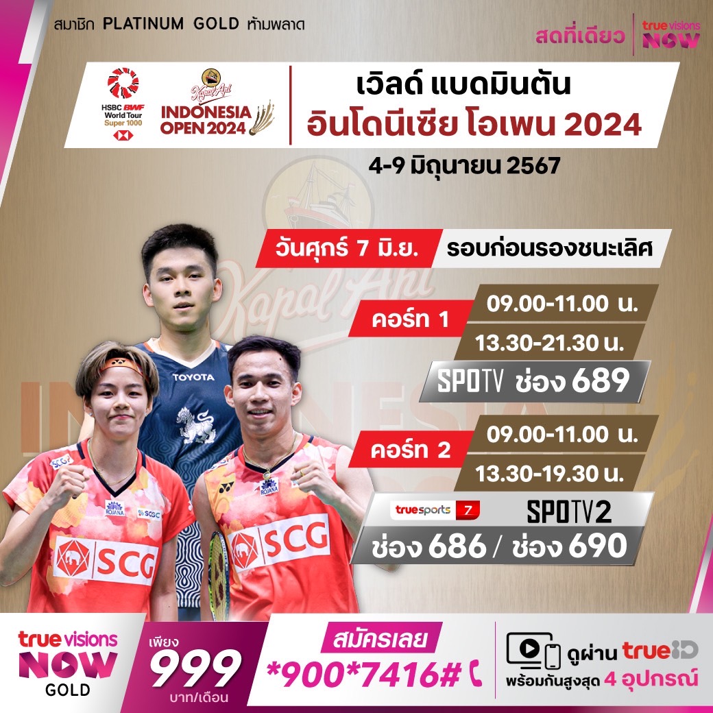 เวิลด์ แบดมินตัน ระดับ เวิลด์ ทัวร์ ซูเปอร์ 1000 รายการ อินโดนีเซีย โอเพ่น 2024 มือดีระดับโลกมาร่วมตัวกันแบบครบๆ ที่กรุงจาการ์ต้า ประเทศอินโดนีเซีย พร้อมกับนักแบดมินตันทัพใหญ่จากไทยที่ร่วมลุ้นแชมป์ด้วย ใครจะคว้าแชมป์ไปครอง ชมสด เอ็กซ์คลูซีฟ ครบทุกรอบ ที่เดียวที่ ทรูวิชั่นส์