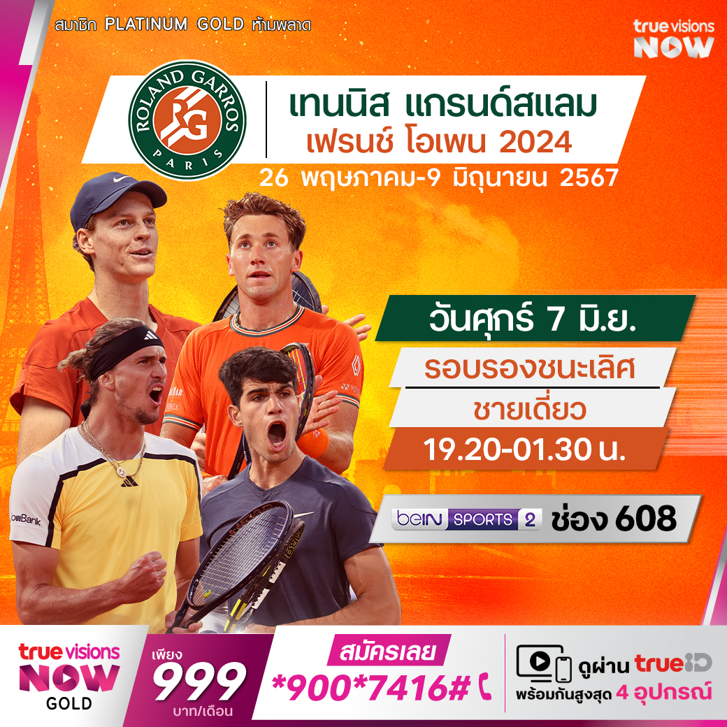 ติดตามชมศึกเทนนิส โรลังด์ การ์รอส หรือ เฟร้นช์ โอเพ่น แกรนด์สแลมที่ 2 ของปี การแข่งขันสุดทรหดบนคอร์ทดิน ที่พิสูจน์ความแข็งแกร่งทั้งร่างกายและจิตใจ มาถึงในรอบรองชนะเลิศแล้ว ใครจะก้าวไปเป็นแชมป์ในบั้นปลาย ชมสด เอ็กซ์คลูซีฟ ตลอดทั้งทัวร์นาเมนท์ ที่เดียวที่ ทรูวิชั่นส์