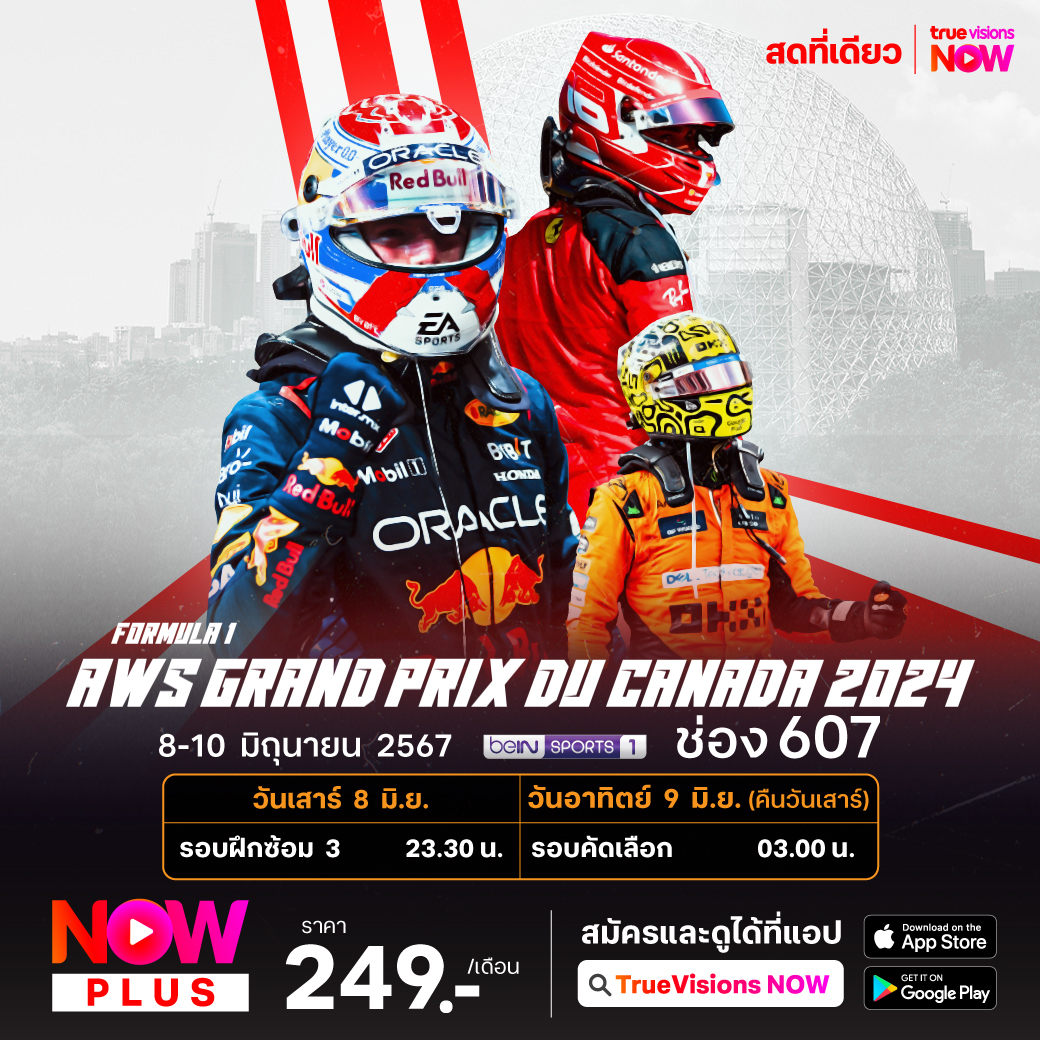 ศึกฟอร์มูล่า วัน รายการ แคนาเดียน กรังด์ปรีซ์ จากสนาม ชิลส์ วิลเนิร์ฟ เซอร์กิต ในมอนทรีออล ประเทศแคนาดา เต็งหนึ่งอย่าง แม็กซ์ เวอร์สแท็ปเพน แชมป์โลก 3 สมัย ต้องเต็มที่และพลาดให้น้อยที่สุด เพราะคู่แข่งสำคัญอย่าง เฟอร์รารี่, แม็คลาเรน และ เมอร์ซิเดส ไล่ตามกดดันอย่างหนัก ลุ้นกันว่าใครจะเป็นแชมป์ ชมสด ครบทุกช่วงการแข่งขัน ที่เดียวที่ ทรูวิชั่นส์