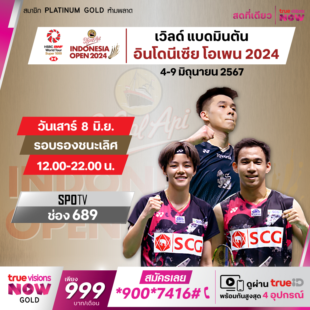เวิลด์ แบดมินตัน ระดับ เวิลด์ ทัวร์ ซูเปอร์ 1000 รายการ อินโดนีเซีย โอเพ่น 2024 มือดีระดับโลกมาร่วมตัวกันแบบครบๆ ที่กรุงจาการ์ต้า ประเทศอินโดนีเซีย พร้อมกับนักแบดมินตันทัพใหญ่จากไทยที่ร่วมลุ้นแชมป์ด้วย ใครจะคว้าแชมป์ไปครอง ชมสด เอ็กซ์คลูซีฟ ครบทุกรอบ ที่เดียวที่ ทรูวิชั่นส์