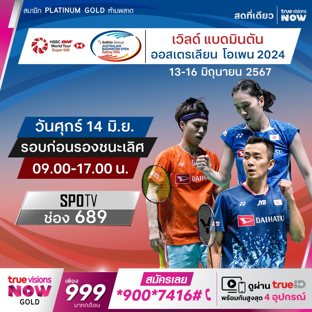 ชิงเงินรางวัลรวม 15 ล้านบาท ในรอบก่อนรองชนะเลิศ ร่วมเชียร์นักแบดมินตันไทย เปิดศึกกับมือระดับโลก ใครจะคว้าชัยชนะ เดินหน้าเข้ารอบไปลุ้นแชมป์ ชมสดจุใจ เอ็กซ์คลูซีฟ ที่เดียวที่ ทรูวิชั่นส์