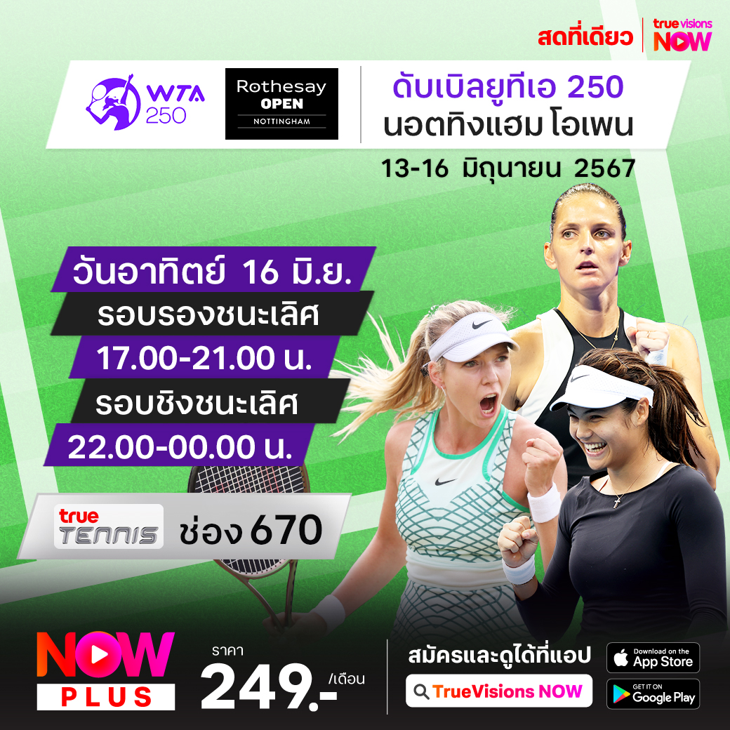 เทนนิสหญิง ดับเบิ้ลยูทีเอ ทัวร์ รายการ น็อตติ้งแฮม โอเพ่น ที่สหราชอาณาจักร มาถึงในรอบรองชนะเลิศและรอบชิงชนะเลิศแล้ว มาลุ้นกันว่าใครจะทำผลงานได้ดีและคว้าแชมป์ไปครอง ชมสด ที่ ทรูวิชั่นส์