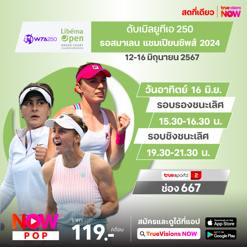 เทนนิสหญิง ดับเบิ้ลยูทีเอ ทัวร์ รายการ ลิเบม่า โอเพ่น ที่ประเทศเนเธอร์แลนด์ มาถึงในรอบรองชนะเลิศและรอบชิงชนะเลิศแล้ว ร่วมลุ้นว่าใครจะคว้าแชมป์ไปครอง ชมสด ที่ ทรูวิชั่นส์