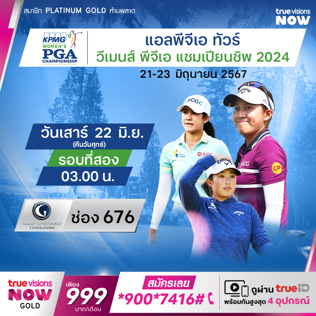กอล์ฟหญิง แอลพีจีเอ ทัวร์ รายการเมเจอร์ลำดับที่ 3 ของปี เคพีเอ็มจี วีเมนส์ พีจีเอ แชมเปี้ยนชิพ 2024 ที่สนาม ซาฮาลี คันทรี่ คลับ ในแซมมามิช รัฐวอชิงตัน ร่วมเชียร์ โปรสาวไทย ทำผลงานเบียดแย่งแชมป์กับโปรแถวหน้าของทัวร์ พร้อมกับชิงเงินรางวัลรวมมากถึง 370 ล้านบาท สด ครบทุกรอบ ที่ ทรูวิชั่นส์