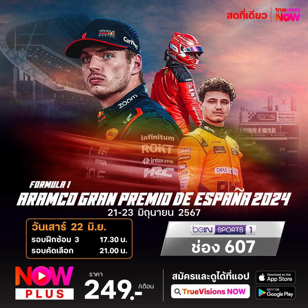 ศึก ฟอร์มูล่า วัน สนามที่ 10 ของปี ในรายการ สแปนิช กรังด์ปรีซ์ ที่สังเวียน คาตาลุนญ่า เซอร์กิต ในบาร์เซโลน่า ประเทศสเปน จับตาดูแชมป์โลก 3 สมัย แม็กซ์ เวอร์สแท็ปเพ่น จะคืนฟอร์มเก่งได้หรือไม่ และบรรดาคู่แข่งจะกดดันได้ดีแค่ไหนในการแย่งเป็นแชมป์ สดเอ็กซ์คลูซีฟ ที่เดียวที่ ทรูวิชั่นส์