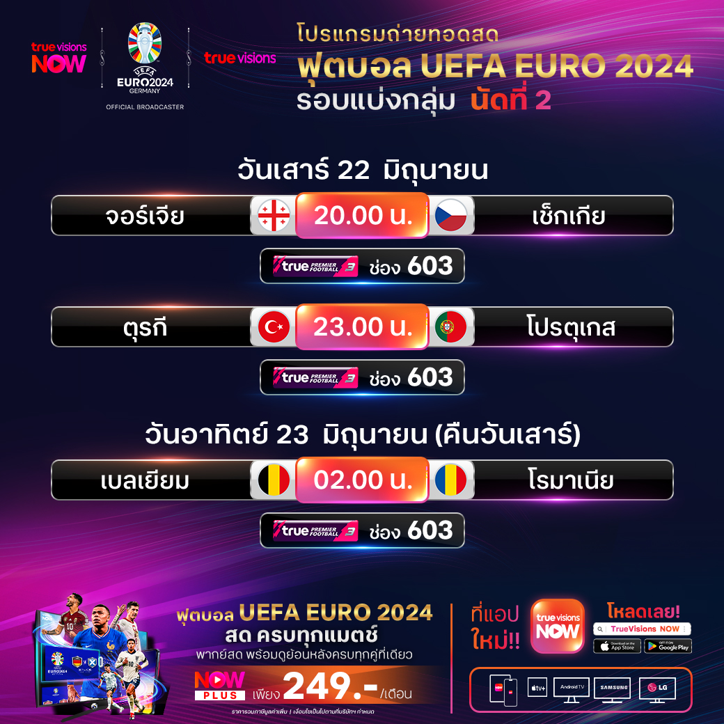 Turkiye vs Portugal เวลา 23.00-01.00 ทางช่อง TPF 3 (603)