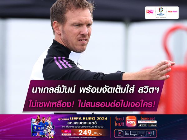 ทีมชาติเยอรมัน เจ้าภาพในศึกฟุตบอล ยูโร 2024 ออกสตาร์ททัวร์นาเมนต์ได้อย่างยอดเยี่ยม กับการเดินหน้าเก็บ 6 แต้มเต็ม ตีตั๋วเข้ารอบ 16 ทีมสุดท้ายแน่นอนแล้ว โดยพวกเขามีโปรแกรมลงเล่นนัดสุดท้ายของรอบแบ่งกลุ่ม พบกับ สวิตเซอร์แลนด์ ค่ำคืนวันนี้(23 มิ.ย. 67) เวลา 02.00 น. ถ่ายทอดสดทาง true PREMIER FOOTBALL 3 (ช่อง 603)