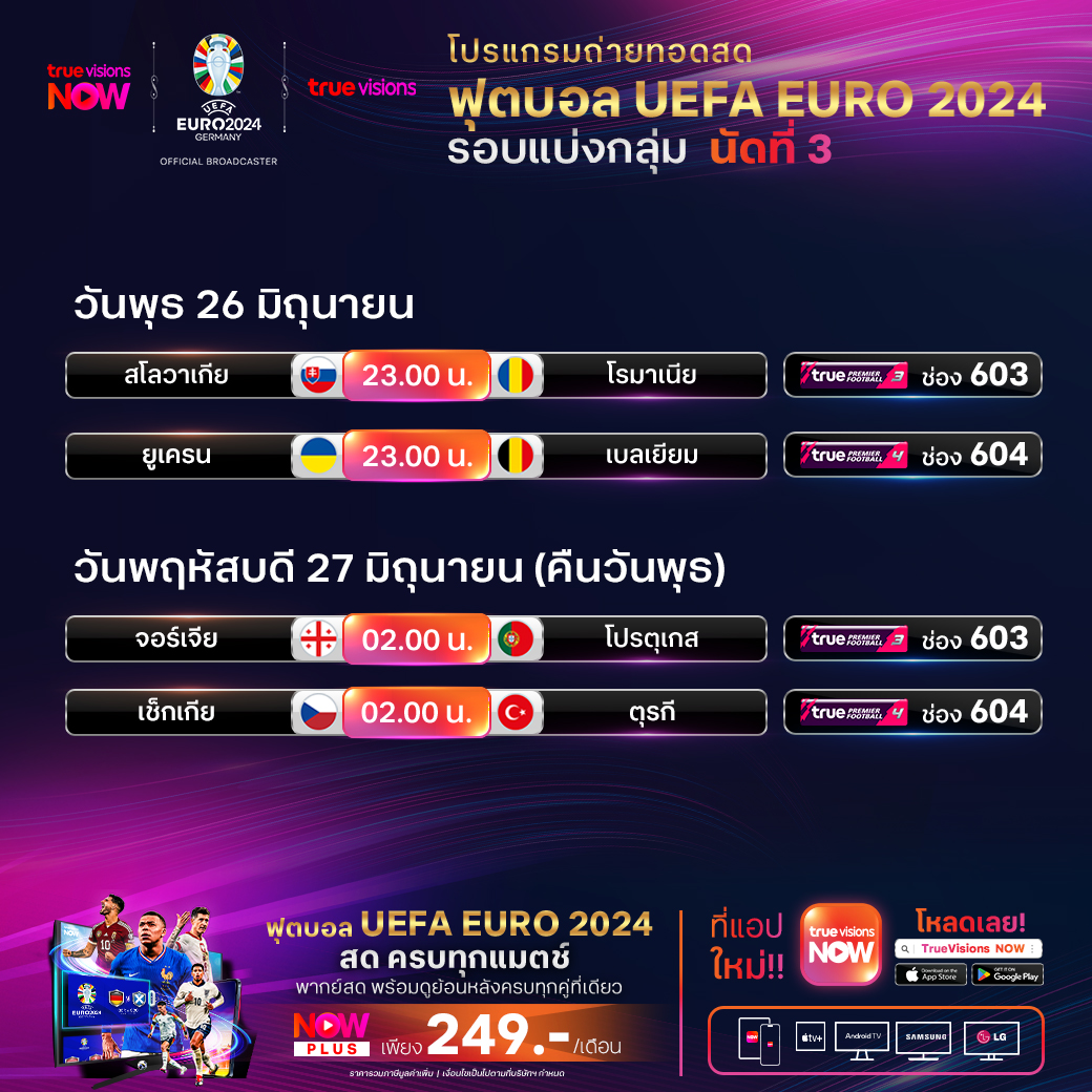 Czechia vs Turkiye เวลา 02.00-04.00 ทางช่อง TPF 4 (604)