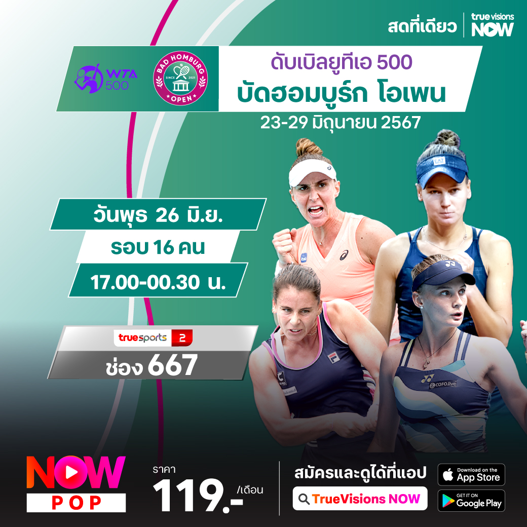 เทนนิสดับเบิลยูทีเอ ทัวร์ รายการ บัด ฮอมบูร์ก โอเพ่น รายการคอร์ทหญ้ารายการสุดท้าย ก่อนที่จะเข้าสู่ แกรนด์สแลม วิมเบิลดัน เหล่าบรรดานักเทนนิสมือวางต่างเข้าร่วมชิงขัยในรายการนี้ ใครจะคว้าแชมป์รายการนี้ไปครอง ชมสด ที่ ทรูวิชั่นส์