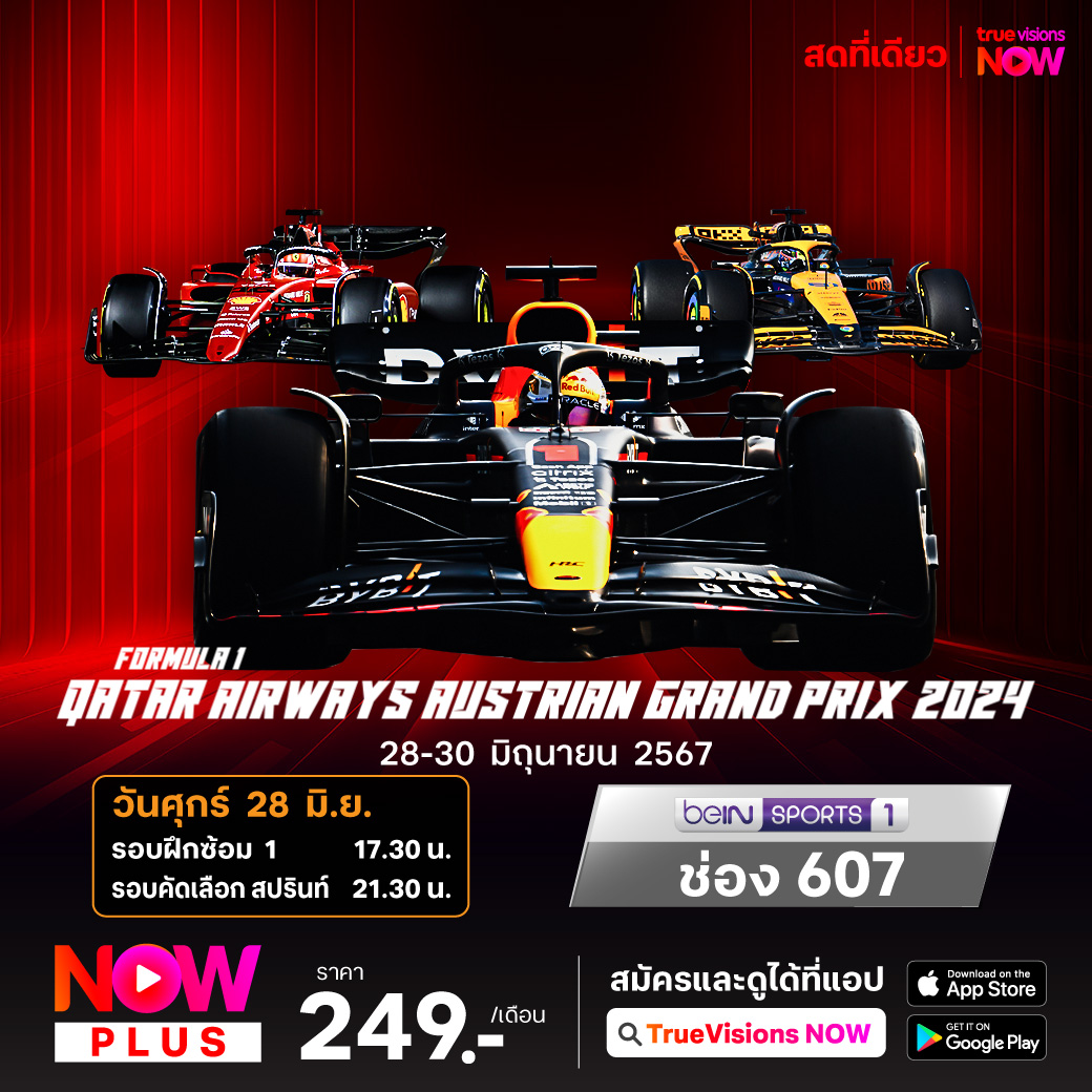 ฟอร์มูล่า วัน สัปดาห์นี้ ไปกันที่ สนาม เร้ด บูล ริง ในสปิลเบิร์ก ประเทศออสเตรีย กับรายการ ออสเตรียน กรังด์ปรีซ์ โฮม เรซ ของทีมแชมป์โลก เร้ด บูล เรซซิ่ง ที่แม็กซ์ เวอร์สแท็ปเพ่น แชมป์โลก 3 สมัย จะปล่อยให้ตำแหน่งแชมป์หลุดมือไปให้กับทีมคู่แข่งไม่ได้ทุกกรณี ชมสด เอ็กซ์คลูซีฟ ครบทุกช่วง ที่เดียว ที่ทรูวิชั่นส์