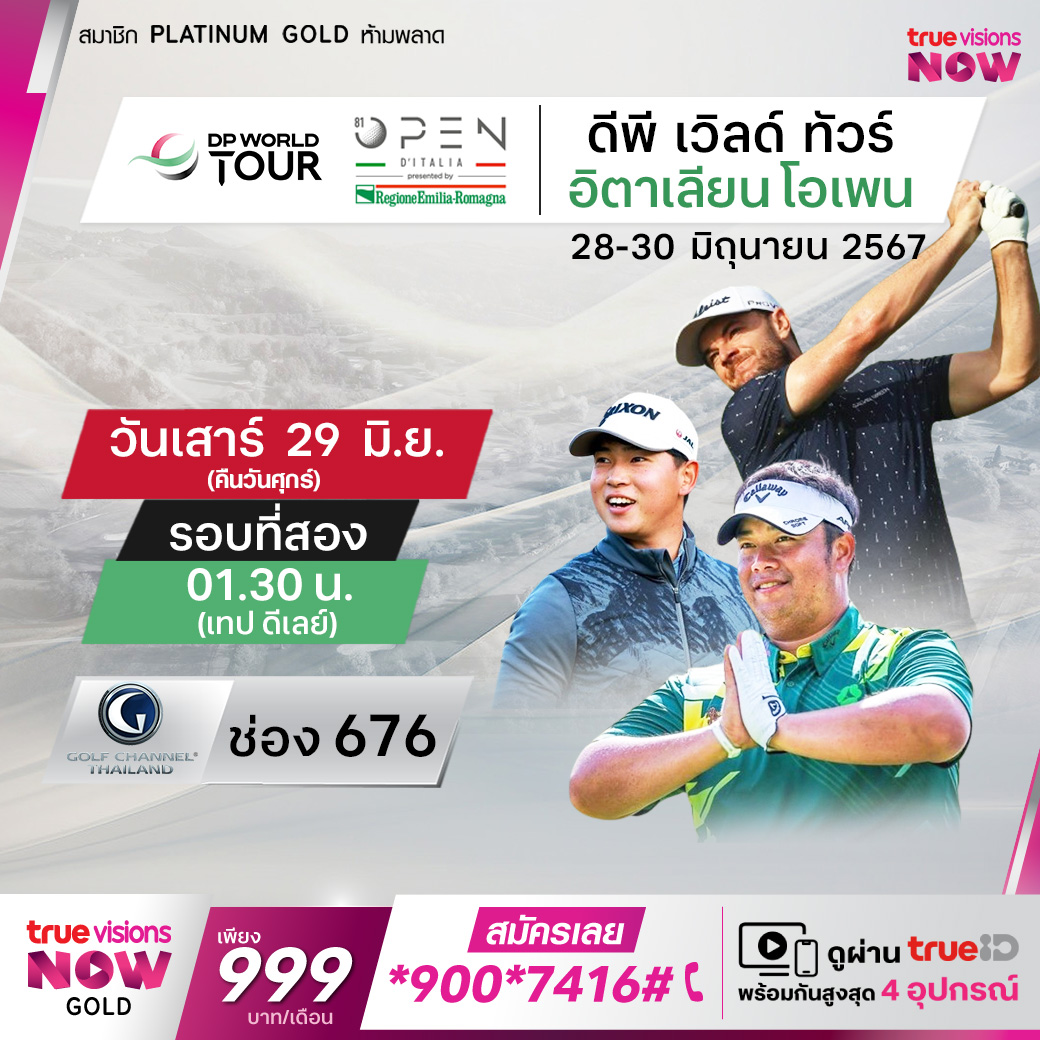 กอล์ฟ ดีพี เวิลด์ ทัวร์ รายการ อิตาเลียน โอเพ่น ที่สนาม อดริอาติก กอล์ฟ คลับ เซอร์เวีย, มิลาโน่ มาริตติม่า ชิงแชมป์แห่งศักดิ์ศรีและเงินรางวัลรวมกว่า 118 ล้านบาท ตามเชียร์กันรอบแต่รอบ และร่วมลุ้นว่าใครจะคว้าแชมป์ในปีนี้ ชมสด ทุกรอบ ที่ ทรูวิชั่นส์