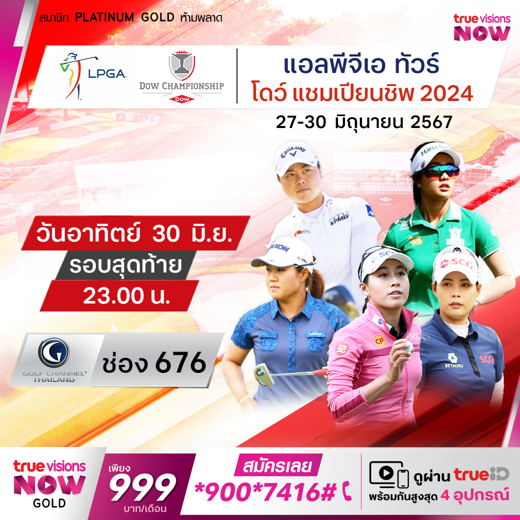 กอล์ฟหญิง แอลพีจีเอ ทัวร์ รายการ โดว์ แชมเปี้ยนชิพ ที่สนาม มิดแลนด์ คันทรี่ คลับ ในมิดแลนด์ รัฐมิชิแกน แข่งขันแบบทีม 2 คน ที่จะต้องอาศัยฝีมือและทีมเวิร์คในการทำสกอร์เพื่อแย่งชิงกันคว้าแชมป์ โดยมีเงินรางวัลรวมให้ชิงกันถึง 109 ล้านบาท ร่วมเชียร์และลุ้นกันว่าทีมสาวไทยจะคว้าแชมป์ได้อีกครั้งหรือไม่ ชมสด ครบทุกรอบ ที่ ทรูวิชั่นส์