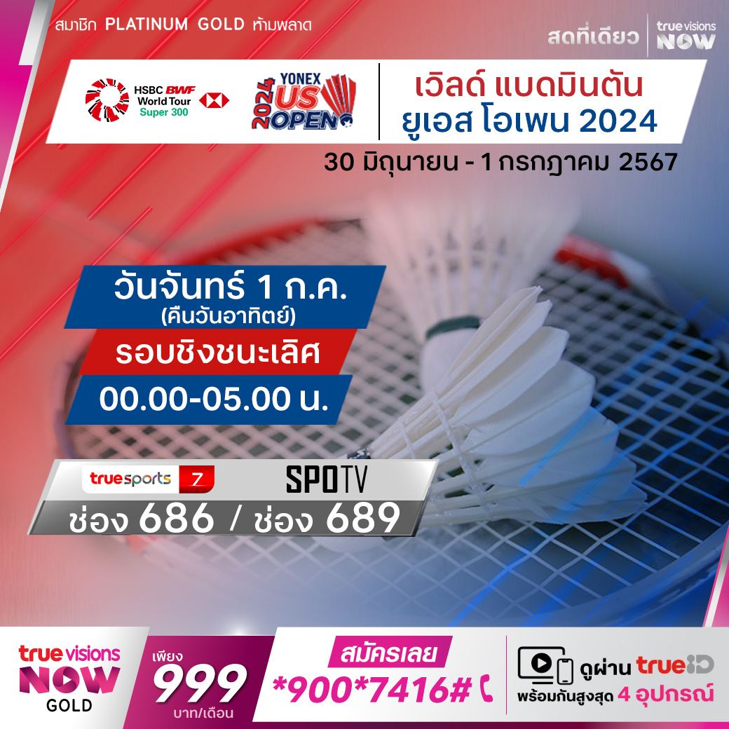 แบดมินตัน บีดับเบิ้ลยูเอฟ รายการสำคัญ ยูเอส โอเพ่น 2024 รายการระดับ เวิลด์ ทัวร์ ซูเปอร์ 300 ที่จัดต่อเนื่องมาหลายปี มือดี มือดาวรุ่ง บินร่วมแข่งขันและลุ้นเป็นแชมป์ที่ ฟอร์ท เวิร์ธ คอนเวนชั่น เซนเตอร์ ใน ฟอร์ท เวิร์ธ รัฐเท็กซัส ชิงเงินรางวัลรวม 7.6 ล้านบาท ชมสด เอ็กซ์คลูซีฟ ที่ ทรูวิชั่นส์