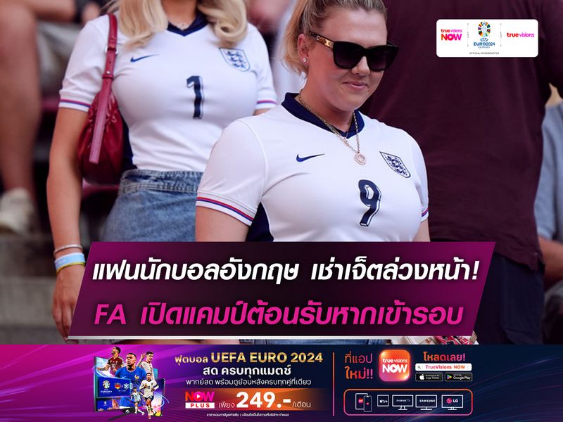 เหล่าบรรดาแฟนนักเตะทีมชาติอังกฤษ ได้เช่าเครื่องบินเจ็ตเหมาลำเพื่อเจอคนรัก ในศึกฟุตบอลยูโร 2024 ทาง สมาคมฟุตบอลอังกฤษ (FA) เตรียมเปิดแคมป์ต้อนรับหากทีมเข้ารอบ 8 ทีมสุดท้าย