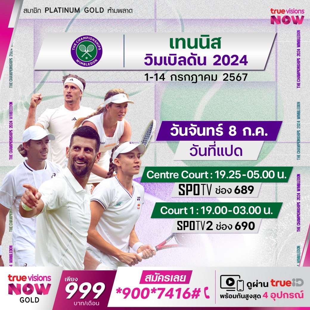 วันนี้มีอะไรดูที่ ทรูวิชั่นส์ ประจำวันจันทร์ที่ 8 กรกฎาคม 67 ยังคงมีกีฬาที่น่าสนใจให้ได้ตามลุ้นตามเชียร์กันเหมือนเดิม โดยยังมีศึกเทนนิสวิมเบิลดัน แกรนด์สแลมที่ 3 ของปี ให้ได้ตามเชียร์กันอย่างต่อเนื่อง งานนี้ ทรูวิชั่นส์ จัดเต็มให้ชมกันถึงบ้าน