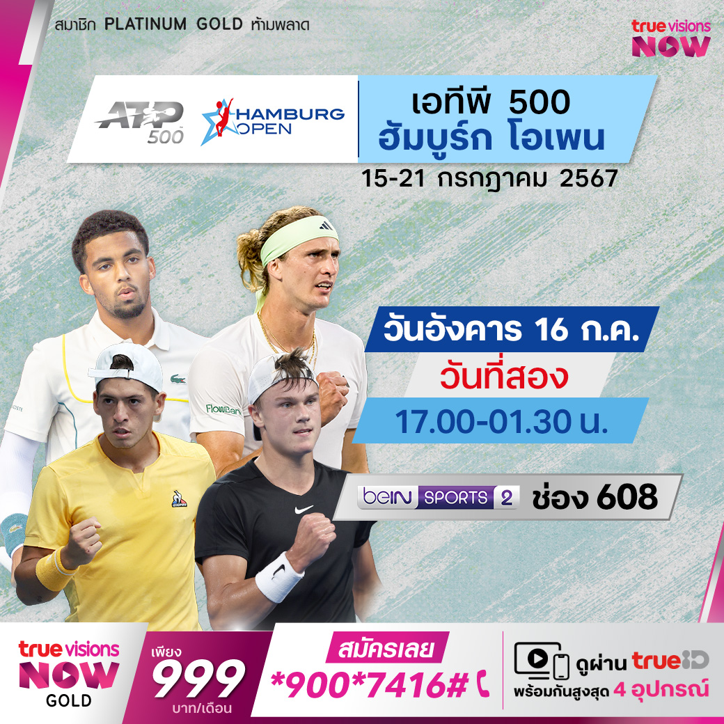 การแข่งขันเทนนิสคอร์ทดิน รายการระดับ ATP 500 กับรายการ ฮัมบูร์ก โอเพ่น ที่เมืองฮัมบูร์ก ประเทศเยอรมนี ถือเป็นรายการที่ให้เหล่านักเทนนิสได้มาทดสอบฝีมือ เตรียมความพร้อมก่อนเข้าสู่การแข่งขันกีฬาเทนนิสในโอลิมปิกเกมส์ ช่วงปลายเดือนกรกฏาคม ร่วมลุ้นว่าใครจะคว้าแชมป์ไปครอง ชมสดที่ ทรูวิชั่นส์