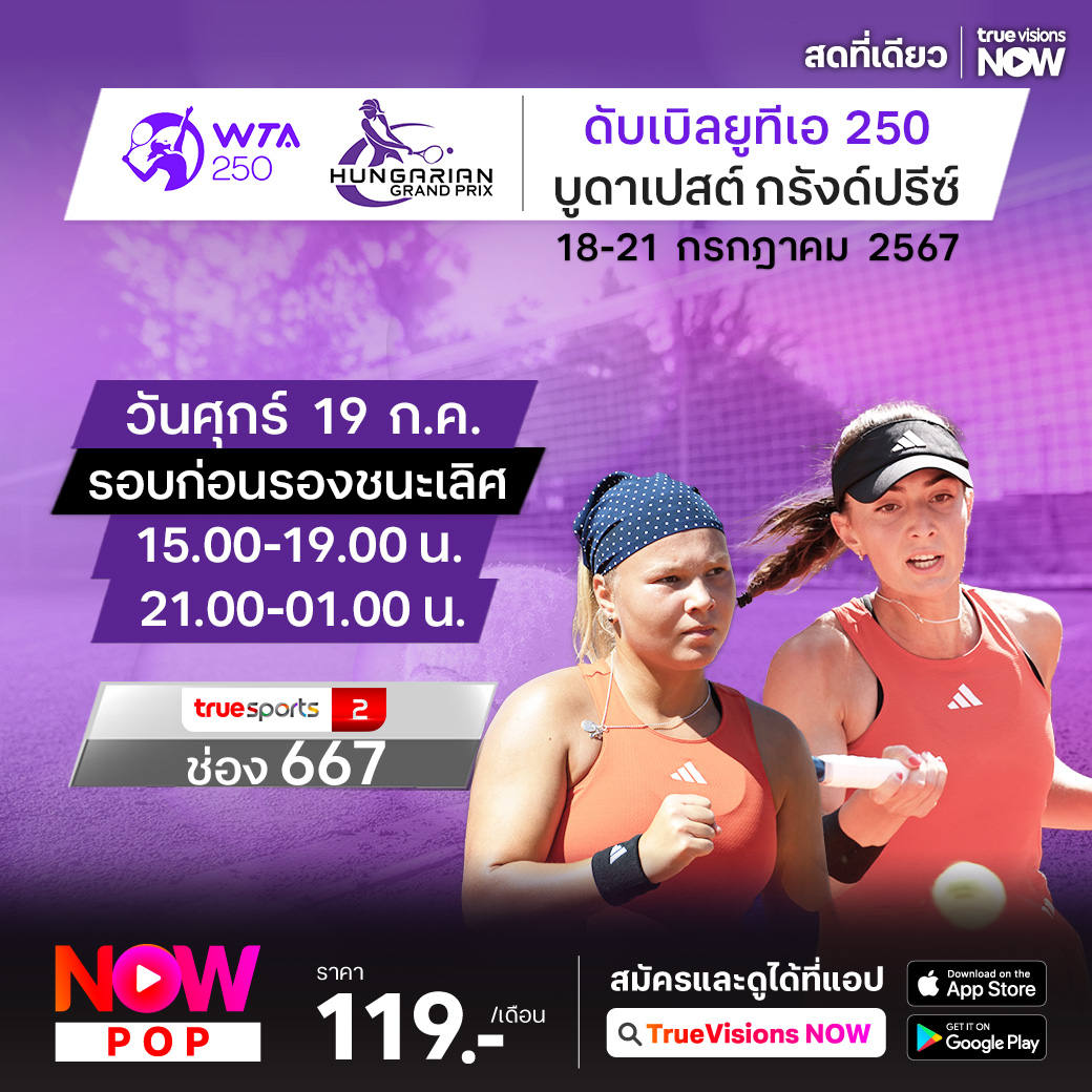 การแข่งขันเทนนิสหญิง ดับเบิ้ลยูทีเอ ทัวร์ รายการ บูดาเปสต์ กรังด์ปรีซ์ รายการบนคอร์ทดินจากเมืองบูดาเปสต์ ประเทศฮังการี รายการนี้ถือเป็นรายการเตรียมตัวก่อนเข้าสู่การแข่งขัน โอลิมปิก เกมส์ ที่จะจัดการแข่งขันในช่วงปลายเดือนกรกฏาคม ร่วมลุ้นกันว่าใครจะคว้าแชมป์ไปครอง ชมสด ที่ทรูวิชั่นส์