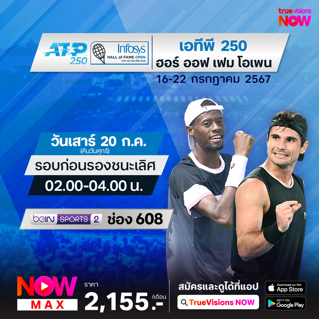 เทนนิส เอทีพี ทัวร์ รายการ ฮอลล์ ออฟ เฟม โอเพ่น การแข่งขันเทนนิสคอร์ทหญ้ารายการสุดท้ายของปี ที่เมืองนิวพอร์ต รัฐโรด ไอแลนด์ รายการนี้ถือว่าเป็นรายการคอร์ทหญ้าส่งท้าย ก่อนจะเข้าสู่ช่วงการแข่งขันฮาร์ทคอร์ทบนทวีปอเมริกาเหนือ ลุ้นกันว่าใครจะคว้าแชมป์รายการนี้ไปครอง ชมสด ที่เดียวที่ ทรูวิชั่นส์