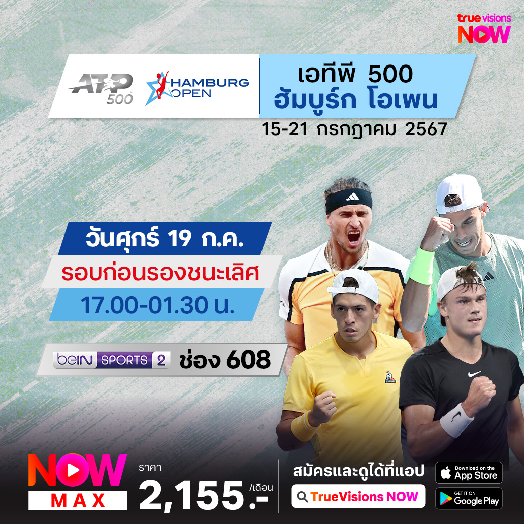 การแข่งขันเทนนิสคอร์ทดิน รายการระดับ ATP 500 กับรายการ ฮัมบูร์ก โอเพ่น ที่เมืองฮัมบูร์ก ประเทศเยอรมนี ถือเป็นรายการที่ให้เหล่านักเทนนิสได้มาทดสอบฝีมือ เตรียมความพร้อมก่อนเข้าสู่การแข่งขันกีฬาเทนนิสในโอลิมปิกเกมส์ ช่วงปลายเดือนกรกฏาคม ร่วมลุ้นว่าใครจะคว้าแชมป์ไปครอง ชมสดที่ ทรูวิชั่นส์