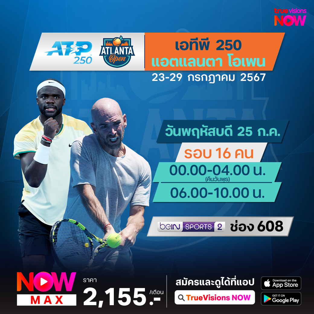 เทนนิสเอทีพี ทัวร์ รายการ แอตแลนต้า โอเพ่น ชิงเงินรางวัลรวมกว่า 756,020 เหรียญสหรัฐฯ เป็นรายการที่ให้นักกีฬาได้เตรียมตัวก่อนเข้าสู่ช่วงการแข่งขันฮาร์ทคอร์ทในทวีปอเมริกาเหนือ ใครจะคว้าแชมป์รายการนี้ไปครอง ชมและเชียร์ ทางทรูวิชั่นส์