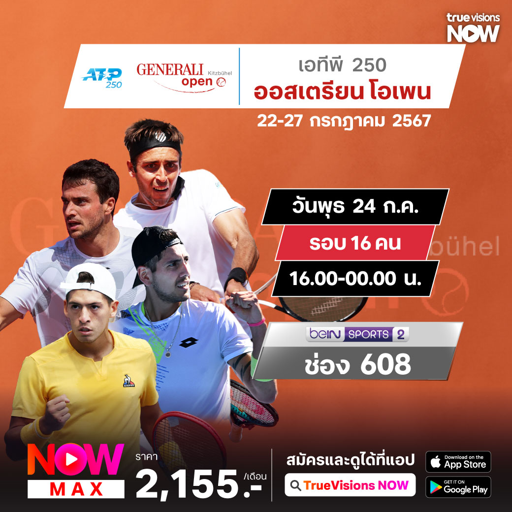 การแข่งขันเทนนิส เอทีพี ทัวร์ รายการ ออสเตรียน โอเพ่น ที่ประเทศออสเตรีย รายการนี้ นอกจากจะเป็นรายการคอร์ทดินรายการสุดท้ายของปี 2024 แล้ว ยังเป็นรายการที่ให้นักกีฬาได้เตรียมความพร้อมก่อนเข้าสู่การแข่งขันโอลิมปิก เกมส์ ที่ฝรั่งเศส ร่วมลุ้นกันว่าใครจะคว้าแชมป์รายการนี้ไปครอง ชมสด ที่ทรูวิชั่นส์