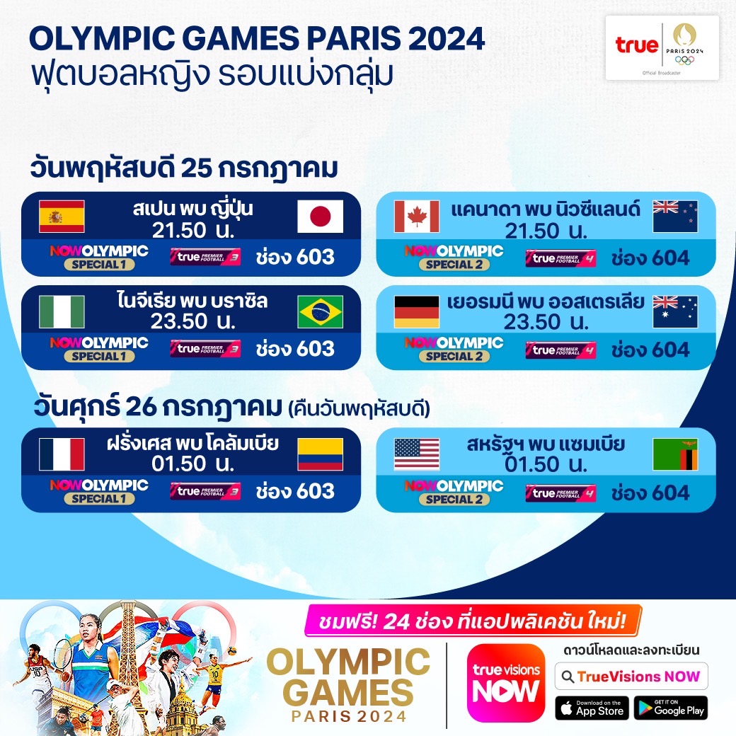 ฟุตบอลหญิง รอบแบ่งกลุ่ม เยอรมนี พบ ออสเตรเลีย เวลา 23.50 ทางช่อง TPF4 (604)