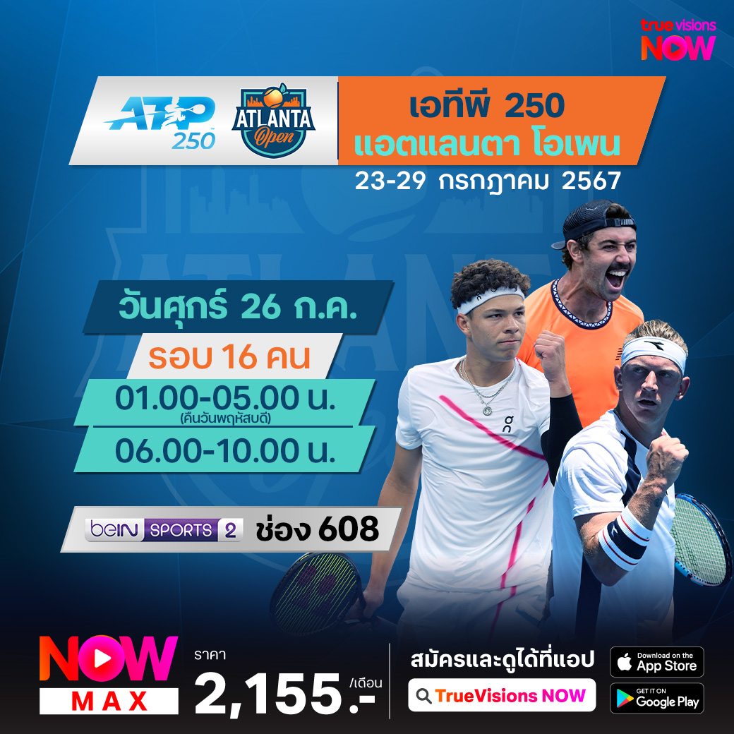 เทนนิสเอทีพี ทัวร์ รายการ แอตแลนต้า โอเพ่น ชิงเงินรางวัลรวมกว่า 756,020 เหรียญสหรัฐฯ เป็นรายการที่ให้นักกีฬาได้เตรียมตัวก่อนเข้าสู่ช่วงการแข่งขันฮาร์ทคอร์ทในทวีปอเมริกาเหนือ ใครจะคว้าแชมป์รายการนี้ไปครอง ชมและเชียร์ ทางทรูวิชั่นส์