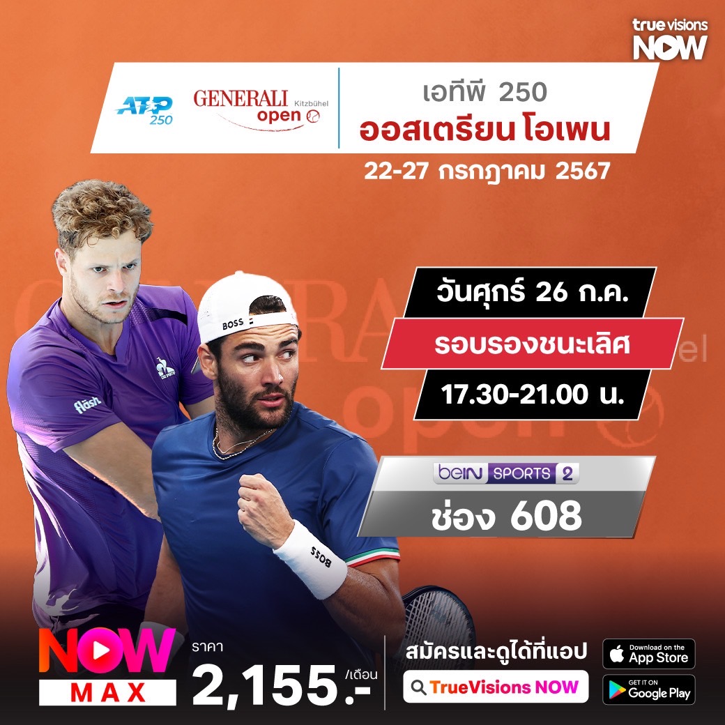 การแข่งขันเทนนิส เอทีพี ทัวร์ รายการ ออสเตรียน โอเพ่น ที่ประเทศออสเตรีย รายการนี้ นอกจากจะเป็นรายการคอร์ทดินรายการสุดท้ายของปี 2024 แล้ว ยังเป็นรายการที่ให้นักกีฬาได้เตรียมความพร้อมก่อนเข้าสู่การแข่งขันโอลิมปิก เกมส์ ที่ฝรั่งเศส ร่วมลุ้นกันว่าใครจะคว้าแชมป์รายการนี้ไปครอง ชมสด ที่ทรูวิชั่นส์