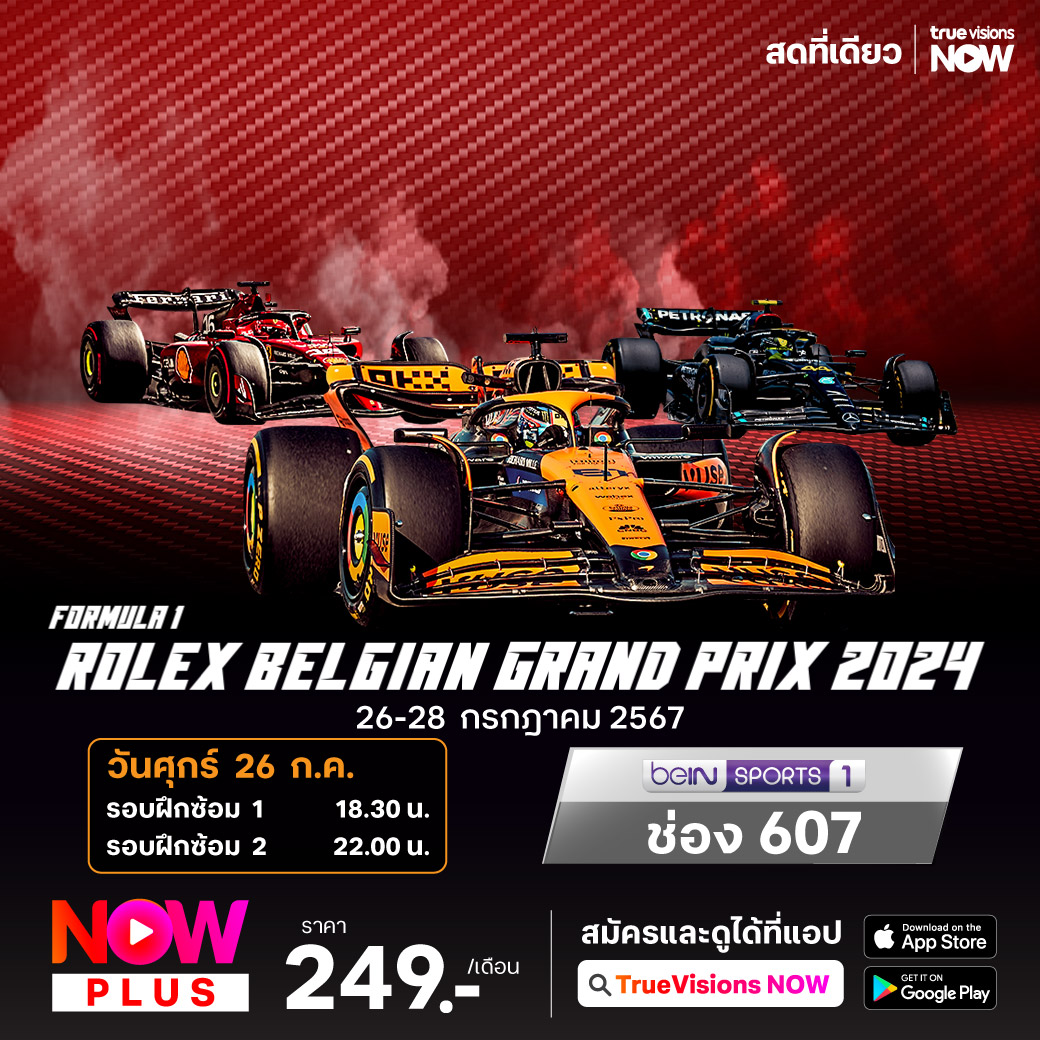 ศึกฟอร์มูล่า วัน เวิลด์ แชมเปี้ยนชิพ ฤดูกาล 2024 เดินทางมาถึงสนามที่ 14 แล้วในสัปดาห์นี้ พบกับรายการ เบลเจี้ยน กรังด์ปรีซ์ จากสนาม สปา ฟรังโคชองส์ ความดุเดือดของการชิงชัยยิ่งทวีมากขึ้นตามลำดับ แชมป์เก่า แม็กซ์ เวอร์สแท็ปเพ่น จากทีมเร้ด บูลล์ ถูกคู่แข่งอย่าง แม็คลาเรน และ เมอร์เซเดส ไล่กดดันอย่างหนักและต่อเนื่อง ร่วมลุ้นกันว่าใครจะได้ยืนบนแป้นโพเดี้ยม ชมสด เอ็กซ์คลูซีฟ ที่เดียวที่ ทรูวิชั่นส์