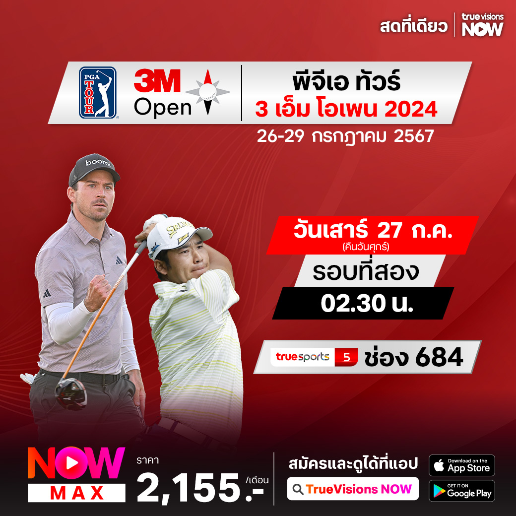 กอล์ฟ พีจีเอ ทัวร์ รายการ 3 เอ็ม โอเพ่น ที่จัดต่อเนื่องมาอย่างยาวนาน จากสนาม ทีพีซี ทวิน ซิตี้ส์, เบลน รัฐมินเนโซต้า มีเงินรางวัลรวมให้ชิงกันมากถึง 304 ล้านบาท ร่วมลุ้นและร่วมเชียร์กันว่า นักกอล์ฟคนไหนจะได้ครองโทรฟี่และตำแหน่งแชมป์ปีนี้ไปครอง ชมสด เอ็กซ์คลูซีฟ ที่เดียวที่ ทรูวิชั่นส์
